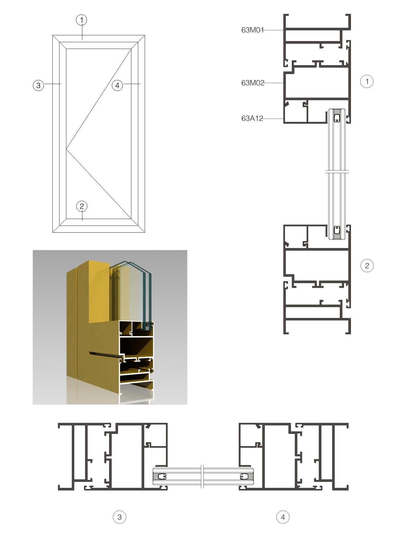 | Model | 63M01 | | Nombre | Marco de la puerta | | Grosor de la pared | 2,0 mm | | Peso del metro | 1.078 kg/m | | | | Model | 63M02 | | Nombre | Hoja de puerta | | Grosor de la pared | 2,0 mm | | Peso del metro | 1.141 kg/m | | |