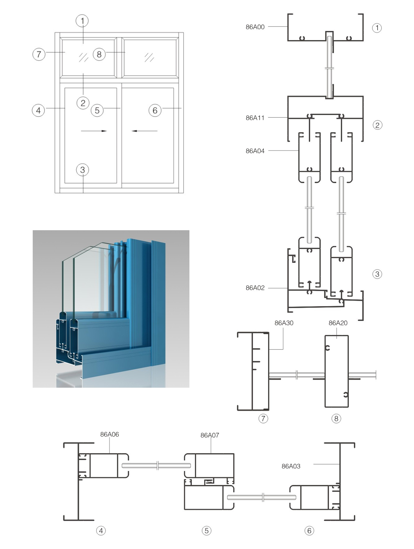 | Model | 86A02A | | Nombre | corredizo | | Grosor de la pared | 1,0 mm | | Peso del metro | 0,944 kg/m | | | | Model | 86A03 | | Nombre | Sello de borde | | Grosor de la pared | 1,0 mm | | Peso del metro | 0,488 kg/m2 | | |