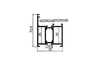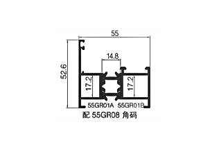 | Model | 55GR06 | | Nombre | ventilador interior | | Grosor de la pared | 1,4 mm | | Peso del metro | 1,458 kg/m | | | | Model | 55GR08 | | Nombre | código de esquina | | Grosor de la pared | | | Peso del metro | 2.102 kg/m | | |
