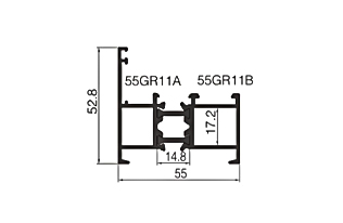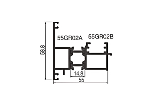 | Model | 55GR01 | | Nombre | Marco | | Grosor de la pared | 1,4 mm | | Peso del metro | 1,109 kg/m | | | | Model | 55GR07KA | | Nombre | Línea de presión | | Grosor de la pared | 0,9 mm | | Peso del metro | 0,207 kg/m2 | | |