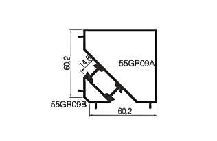 | Model | 55GR04 | | Nombre | De media altura | | Grosor de la pared | 1,4 mm | | Peso del metro | 1,291 kg/m | | | | Model | 60GT09 | | Nombre | Esquina de 90° | | Grosor de la pared | 1,4 mm | | Peso del metro | 1,428 kg/m | | |