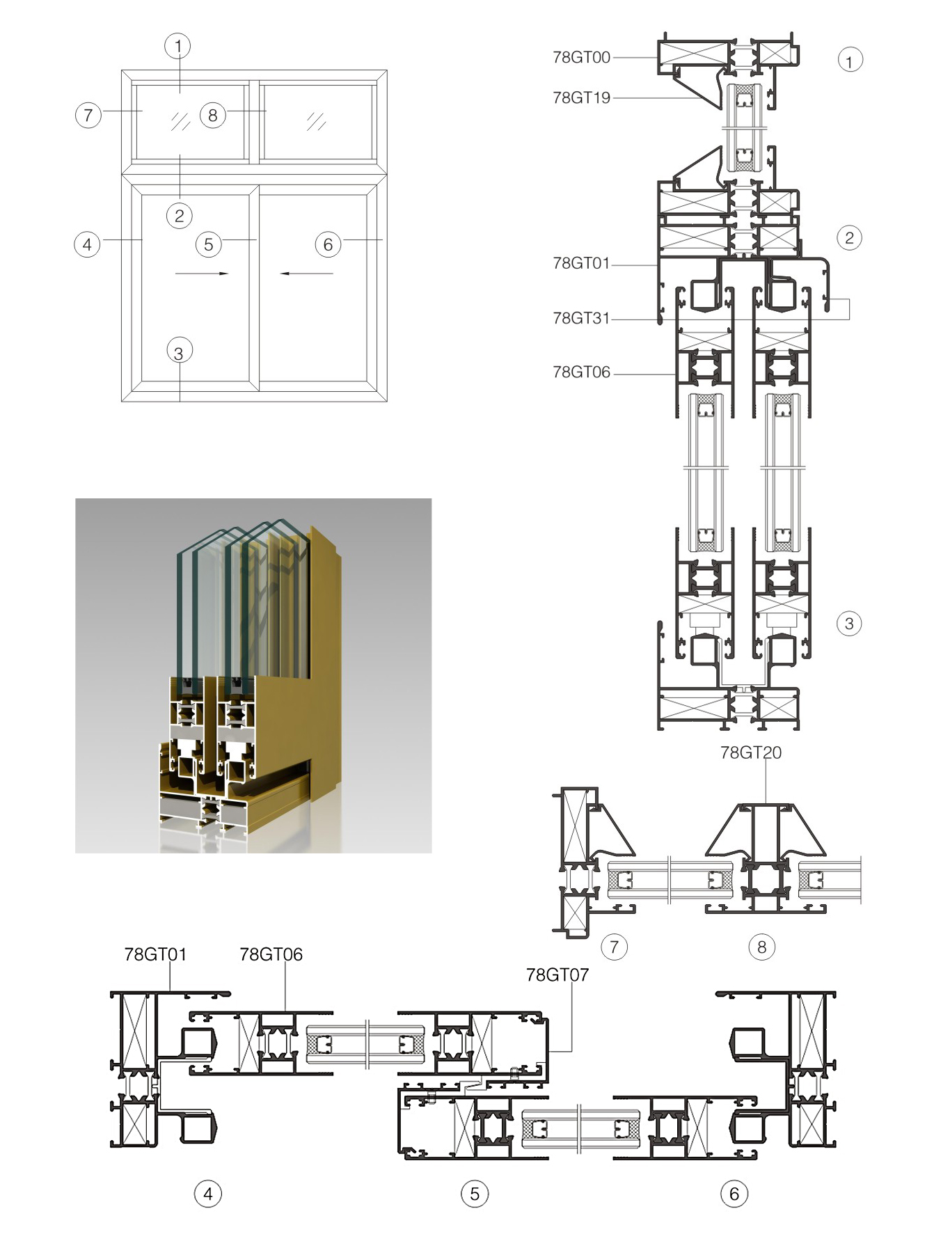 | Model | 78GT00 | | Nombre | Marco fijo | | Grosor de la pared | 1,3 mm | | Peso del metro | 1.101 kg/m | | | | Model | 78GT20 | | Nombre | columna central | | Grosor de la pared | 1,3 mm | | Peso del metro | 1,10 kg/m | | |