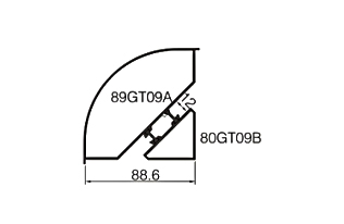 | Model | 89GT09 | | Nombre | Esquina de 90° | | Grosor de la pared | 1,4 mm | | Peso del metro | 1.965 kg/m | | | | Model | 89GT43 | | Nombre | Cubierta frontal con sello de borde | | Grosor de la pared | 1,4 mm | | Peso del metro | 0,709 kg/m | | |