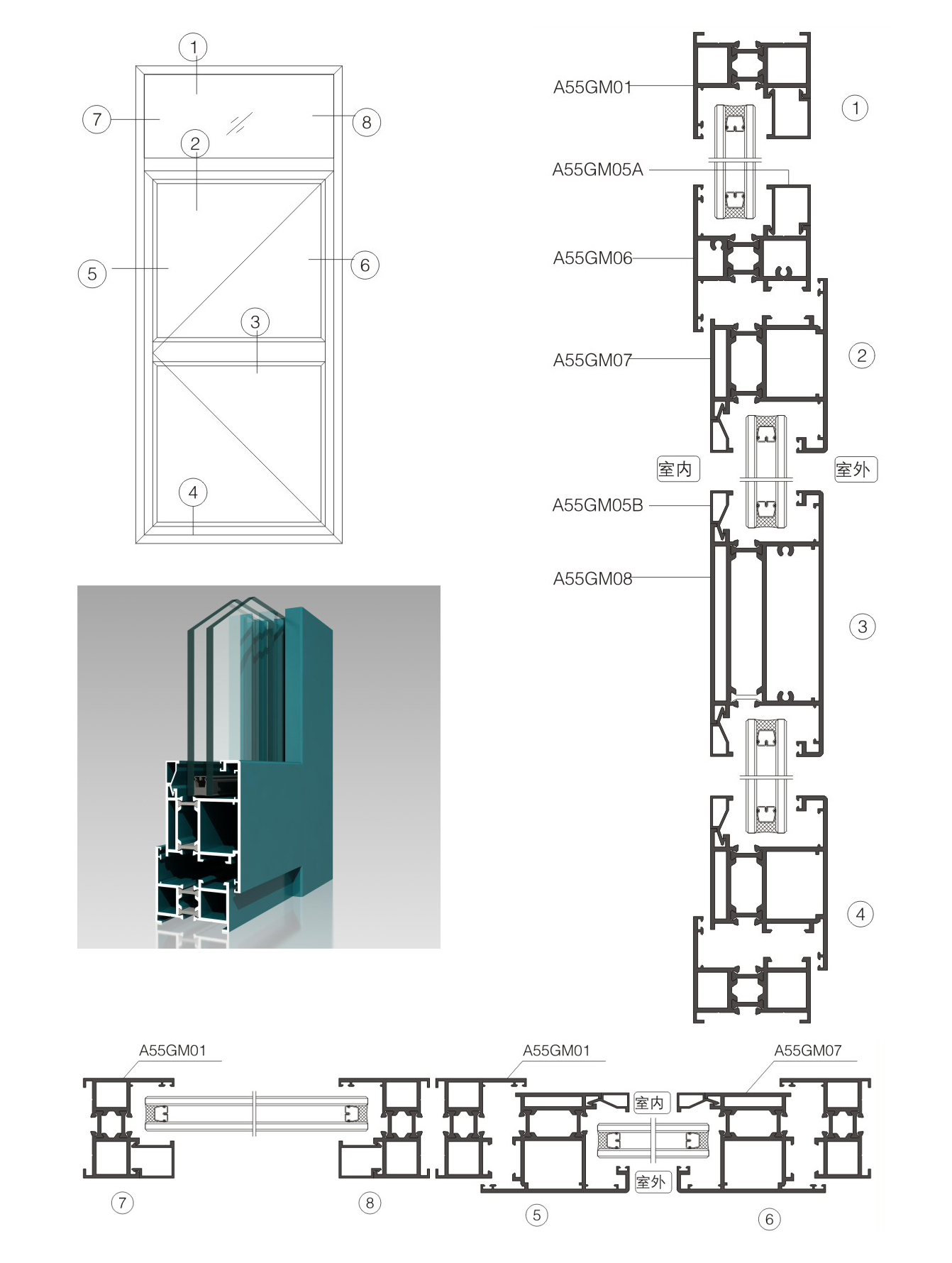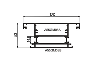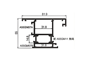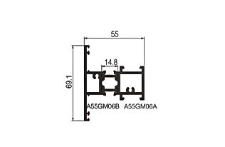 | Model | A55GM03 | | Nombre | Falso de media altura | | Grosor de la pared | 2,0 mm | | Peso del metro | 1.263 kg/m | | | | Model | A55GM08 | | Nombre | Abre la puerta en horizontal. | | Grosor de la pared | 2,0 mm | | Peso del metro | 2,768 kg/m | | |
